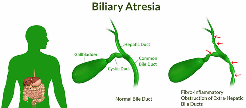 Biliary atresia is a condition in newborn babies in which bile is blocked from moving from the liver to the small intestine.