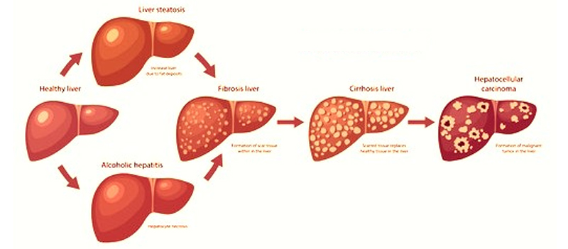 Also called hepatocellular carcinoma, this is the most common form of primary liver cancer. Chronic infection with hepatitis B and C increases the risk of developing this type of cancer. Other causes include certain chemicals, alcoholism, and chronic liver cirrhosis.